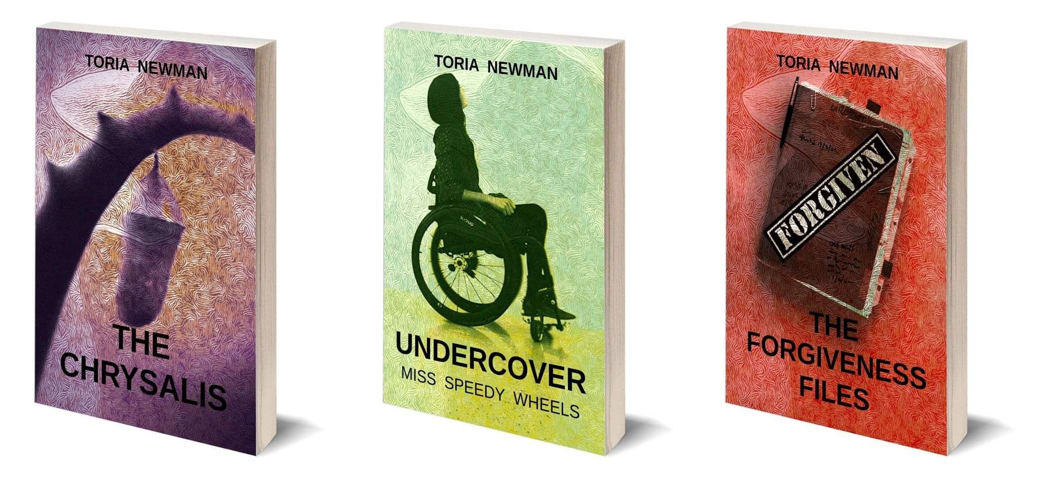 Toria has Cerebral Palsy and gets around in her Ferrari wheelchair. She has been a writer for at least forty years. During the 1980’s, she wrote and produced several plays and produced musical events. She also worked as a contributing journalist for a local newspaper. Then in the 1990’s, Toria ran her own secretarial business and attended Waikato University to learn the Spanish language. Five years later, she was capped, earning a Honors Degree in the Spanish Language and in History. Since 2017, she has written and published four books. She is at present, working on her next novel.