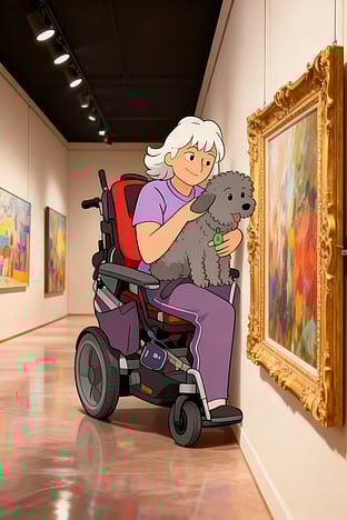 Toria's has a very special wheelchair, her Ferrari. She loves to go to town and also to visit people. This wheelchair has a lift, which helps her get things from high shelves in shops, or do ordinary tasks in her own home.